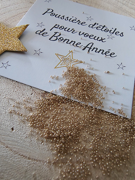 ☆ Lot de 4 petites cartes « Poussière d’étoiles » activée, spéciales voeux de bonne année 2026.
