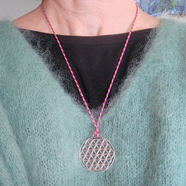 ☆ Ce pendentif « Fleur de Vie » présenté dans sa petite pochette, sera le support parfait pour un temps de méditation ou de réflexion. Vous pouvez le porter en collier, l’accrocher ici ou là, ou le déposer sur votre autel. Cette fleur de vie accueillera également vos petits cristaux afin de les recharger. ⭐️