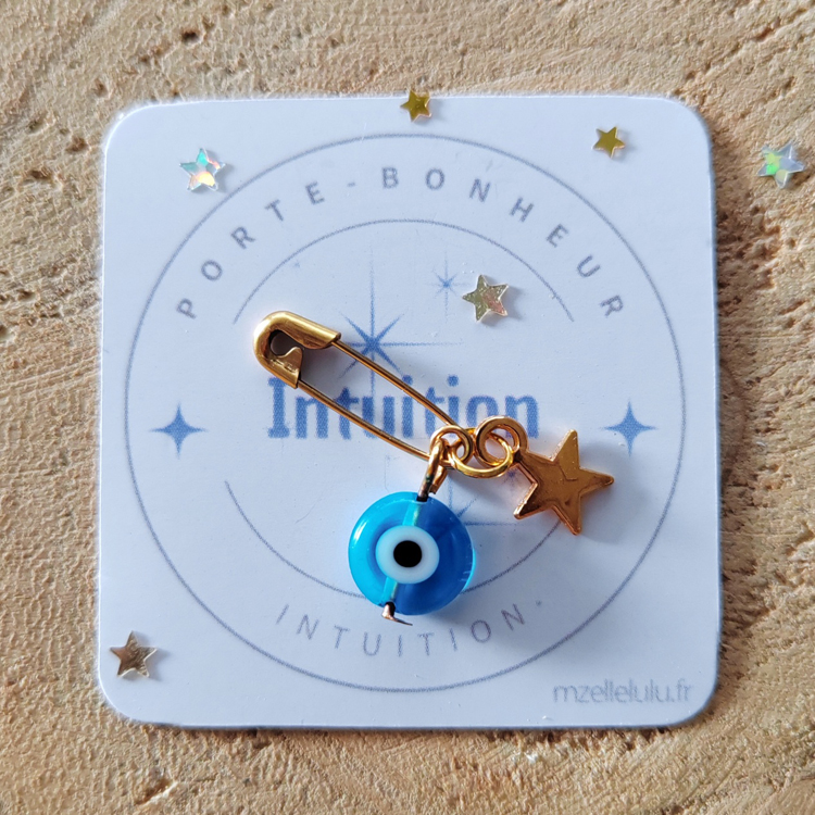 ☆ Amulette mini-épingle nourrice oeil turquoise protecteur 🧿 et sa petite étoile. A accrocher à l’intérieur d’une veste, sur un bonnet etc.
